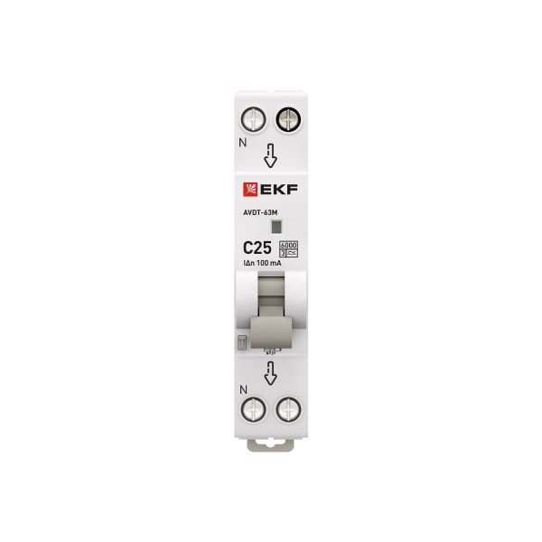 Автоматический выключатель дифференциального тока АВДТ-63 EKF PROxima представляет аппарат, сочетающий функции автоматического выключателя с электромеханическим или электронным УЗО. При обнаружении автоматическим выключателем в защищаемом участке сети тока утечки (повреждения) на землю или сверхтока (тока перегрузки иликороткого замыкания) происходит срабатывание устройства, приводящее к отключению защищаемой сети. Возможна коммутация алюминиевым и медным проводником.Автоматический выключатель дифференциального тока малогабаритный АВДТ-63М EKF PROxima представляет аппарат, сочетающий функции автоматического выключателя с электронным УЗО типа АС в компактном корпусе шириной один модуль. При обнаружении автоматическим выключателем на защищаемом участке сети тока утечки (повреждения) на землю или сверхтока (тока перегрузки или короткого замыкания) происходит срабатывание устройства, приводящее к отключению защищаемой сети. Особое отличие дифференциальных автоматических выключателей EKF с электронным УЗО – в наличии блока защиты от перенапряжения. Возможна коммутация алюминиевым и медным проводом.