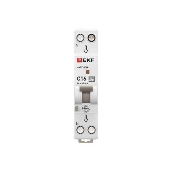 Автоматический выключатель дифференциального тока АВДТ-63 EKF PROxima представляет аппарат, сочетающий функции автоматического выключателя с электромеханическим или электронным УЗО. При обнаружении автоматическим выключателем в защищаемом участке сети тока утечки (повреждения) на землю или сверхтока (тока перегрузки иликороткого замыкания) происходит срабатывание устройства, приводящее к отключению защищаемой сети. Возможна коммутация алюминиевым и медным проводником.Автоматический выключатель дифференциального тока малогабаритный АВДТ-63М EKF PROxima представляет аппарат, сочетающий функции автоматического выключателя с электронным УЗО типа АС в компактном корпусе шириной один модуль. При обнаружении автоматическим выключателем на защищаемом участке сети тока утечки (повреждения) на землю или сверхтока (тока перегрузки или короткого замыкания) происходит срабатывание устройства, приводящее к отключению защищаемой сети. Особое отличие дифференциальных автоматических выключателей EKF с электронным УЗО – в наличии блока защиты от перенапряжения. Возможна коммутация алюминиевым и медным проводом.