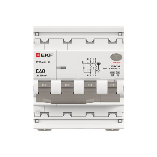 Автоматический выключатель дифференциального тока АВДТ-63N PROXIMA EKF – это аппарат, сочетающий функции автоматического выключателя с электромеханическим или электронным УЗО. При обнаружении автоматическим выключателем в защищаемом участке сети тока утечки (повреждения) на землю или сверхтока (тока перегрузки или короткого замыкания) происходит срабатывание устройства, приводящее к отключению защищаемой сети. Особая конструкция рычага обеспечивает информативность устройства, указывая на причину срабатывания (опущена только часть рычага – короткое замыкание или перегрузка, опущены обе части рычага – ток утечки). Особенностью данной серии АВДТ является усовершенствованная конструкция. Данные выключатели имеют пластиковые крышки, закрывающие доступ к винтовым зажимам и служащие для опломбирования винтовых клемм, что исключает несанкционированный доступ к проводникам. Автоматические выключатели дифференциального тока АВДТ-63N PROXIMA EKF соответствуют ГОСТ IEC 61009-1. Возможна коммутация алюминиевым и медным проводником.
