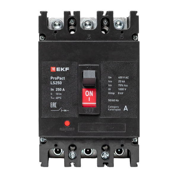 Выключатель LS ProPact выполнен в виде моноблока и состоит из основания и крышки с фальшпанелью, в которой имеется окно для рукоятки управления и толкатель кнопки «Тест» — проверки механизма отключения выключателя. Основание выполнено из термостойкой пластмассы, не поддерживающей горение и являющейся несущей конструкцией для присоединительных зажимов, неподвижных и подвижных контактов с системой дугогашения, механизма управления, блока защиты от сверхтоков. Крышка закрывает все подвижные элементы механизма управления и внутренние токоведущие части. Данная серия не подразумевает возможность установки аксессуаров