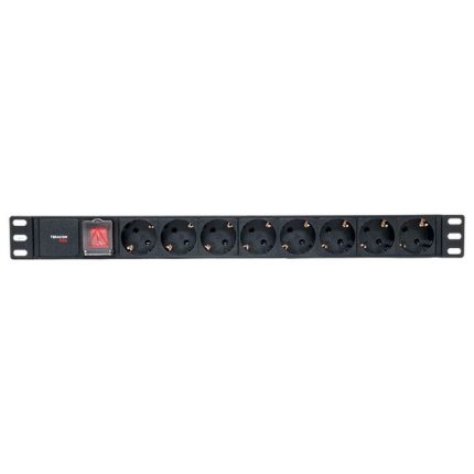 Блок розеток PDU TERACOM PRO 19″ 1U 10А/250В 8 розеток Schuko с выключателем без шнура питания входной разъем C14 корпус алюминий черный