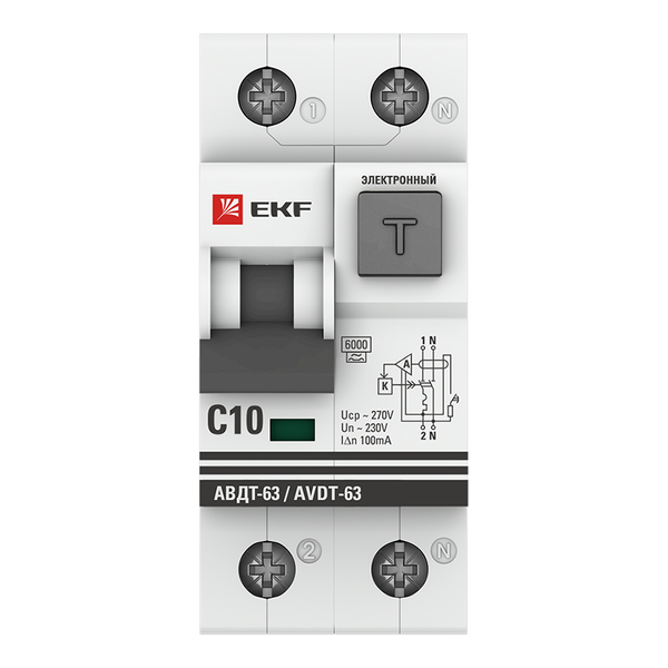 Дифференциальный автомат АВДТ-63 10А/100мА (характеристика C, электронный, тип АС) 6кА EKF PROxima