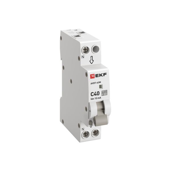 Автоматический выключатель дифференциального тока малогабаритный АВДТ-63М PROXIMA EKF представляет аппарат, сочетающий функции автоматического выключателя с электронным УЗО типа АС в компактном корпусе шириной один модуль. При обнаружении автоматическим выключателем на защищаемом участке сети тока утечки (повреждения) на землю или сверхтока (тока перегрузки или короткого замыкания) происходит срабатывание устройства, приводящее к отключению защищаемой сети. Особое отличие дифференциальных автоматических выключателей EKF с электронным УЗО – в наличии блока защиты от перенапряжения. Соответствует ГОСТ IEC 61009-1.