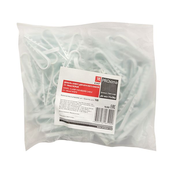 Дюбель-хомут для круглого кабеля (11-18мм) белый (100шт.) EKF PROxima
