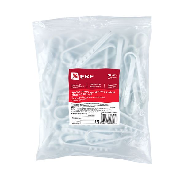 Дюбель-хомут для круглого кабеля (11-18мм) белый (50шт.) EKF PROxima