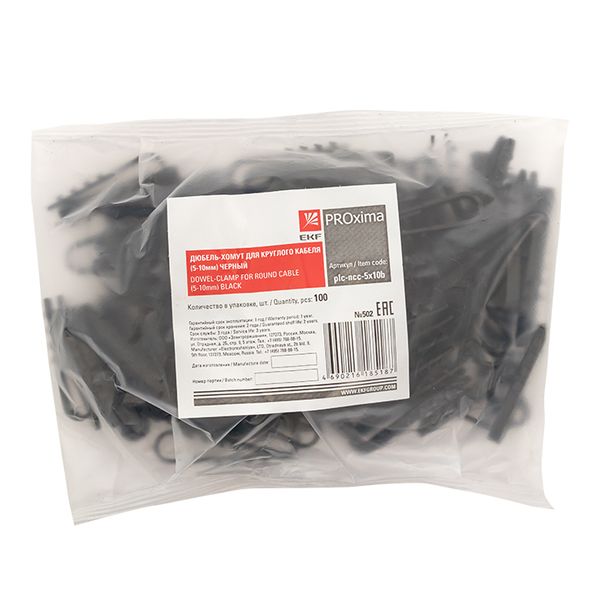 Главная Кабеленесущие системы Дюбель универсальный (общего назначения) Дюбель-хомут для круглого кабеля (5-10мм) черный (100шт.) EKF PROxima