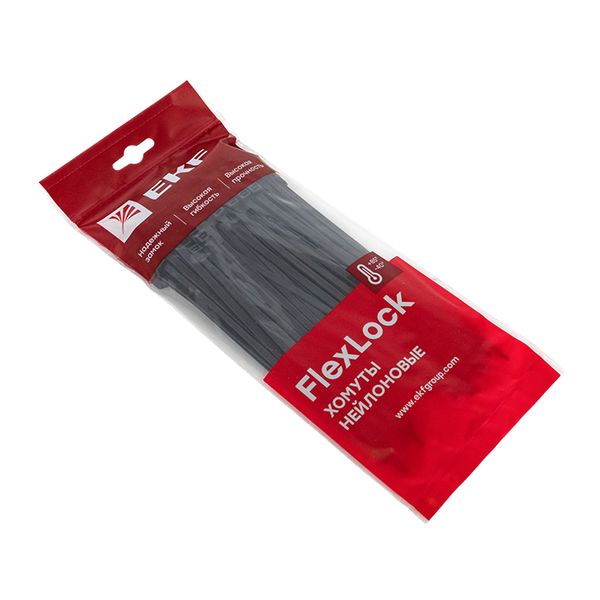 FlexLock в пакетах для розницы по 50 штук расфасованы хомуты белого или черного цвета. Пакеты имеют удобную и надежную застежку Zip Lock. Кабельные стяжки FlexLock изготовлены из высококачественного самозатухающего нейлона 6.6 DuPont, не содержащего галогенов. Они могут использоваться внутри и снаружи помещений и эксплуатироваться при температуре в диапазоне от -40 до +85 °C. Отличаются высокой прочностью и надежностью замков.