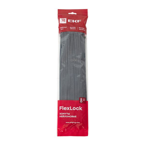 FlexLock в пакетах для розницы по 50 штук расфасованы хомуты белого или черного цвета. Пакеты имеют удобную и надежную застежку Zip Lock. Кабельные стяжки FlexLock изготовлены из высококачественного самозатухающего нейлона 6.6 DuPont, не содержащего галогенов. Они могут использоваться внутри и снаружи помещений и эксплуатироваться при температуре в диапазоне от -40 до +85 °C. Отличаются высокой прочностью и надежностью замков.