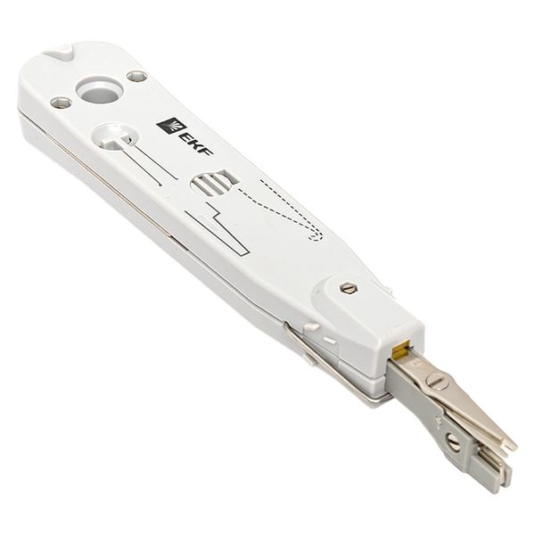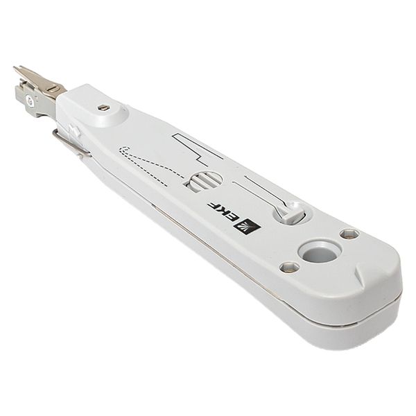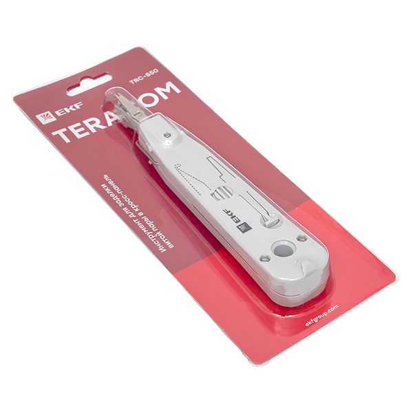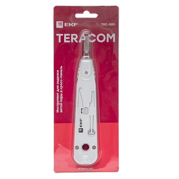 Инструмент для заделки витой парыв кросс-панель TERACOM TRC-S50 EKF предназначен для заделки и обрезки проводников во врезные контакты на кроссах, патч-панелях, розетках и модулях, заделка контактов 110 типа и типа KRONE. Изделие оснащено встроенным ножом с функцией обрезки, а также встроенным комбинированным крючком и плунжером.