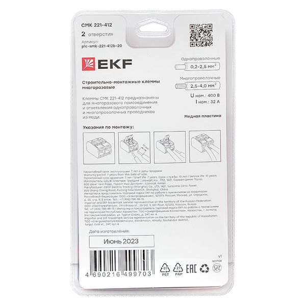 Клемма СМК 221-412 2 отверстия 0,2-4,0 мм2 EKF PROxima