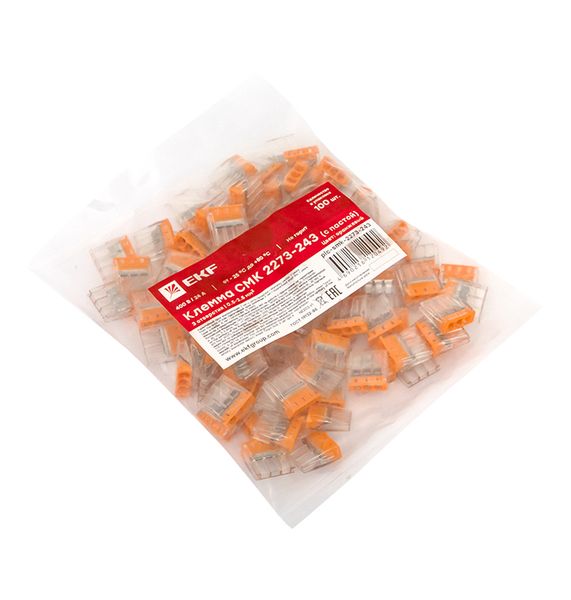 Клеммы СМК компактные серии 2273 применяются в распределительных коробках и предназначены для присоединения и ответвления одножильных проводников из меди и алюминия или многожильного медного провода с наконечником в электрических цепях переменного тока с частотой 50 Гц напряжением до 400 В. Клеммы СМК компактные серии 2273 с пастой предусматривают наличие специальной контактной пасты, которая автоматически снимает окисную пленку с алюминиевых проводов и предохраняет их от повторного окисления. Клеммы можно использовать при температуре от –40 до +40° C.