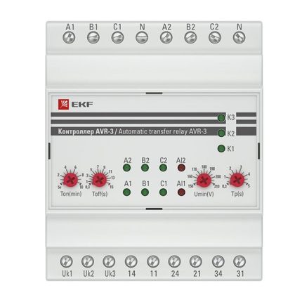 Контроллер автоматического резерва AVR предназначен для управления АВР на базе контакторов на объектах с двумя вводами питания и одной/двумя (для AVR-3) отходящей к нагрузке линии.