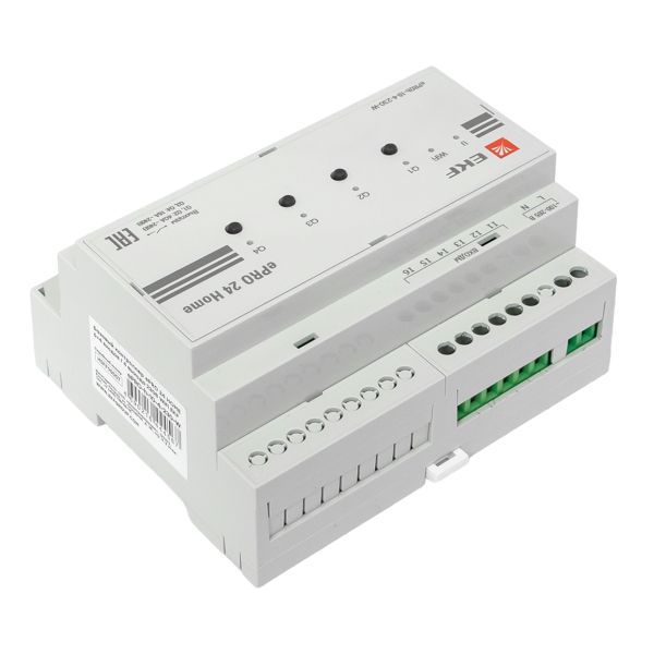 Контроллер ePRO24 Home от EKF — начало вашего умного дома. Он помогает контролировать и управлять важными системами прямо со смартфона. Устройство работает следующим образом: следит за важным, постоянно проверяя напряжение в ключевых точках (например, работает ли насос или есть ли свет в гараже) и состояние подключенных устройств; выполняет ваши сценарии, автоматически включая свет при движении, отключая технику при уходе или запуская полив по расписанию — как вы запрограммируете; передает данные через Wi-Fi, отправляя информацию в защищенное облако EKF; и дает полный контроль, мгновенно отображая все данные в бесплатном приложении EKF Connect Home на вашем телефоне.