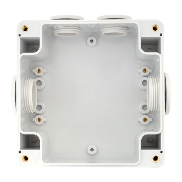 Корпус и крышка выполнены из поликарбоната, фиксируются межу собой винтами из нержавеющей стали. Пыле- и влагозащиту обеспечивает уплотнитель, выполненный из неопрена. Соединительные коробки комплектуется двумя кабельными вводами (М20 и М25) из полиамида, имеющими степень защиты IP68. Неиспользуемые отверстия закрываются заглушками соответствующего диаметра (входят в комплект). Материал изготовления заглушек – полиамид.
