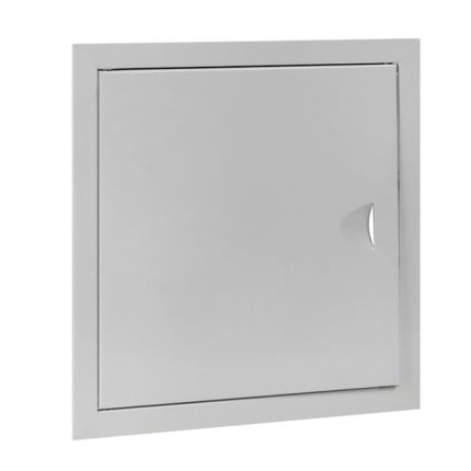 На дверце предусмотрен паз для удобного открывания люка. Закрытие дверцы производится путем фиксации «шип — паз». Габаритный размер, указанный в наименовании — это габарит внутренней части люка, монтируемой в нишу.