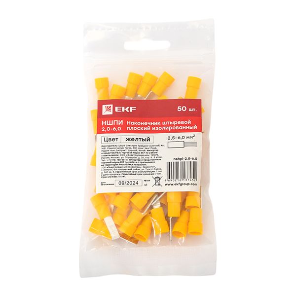 Наконечник штыревой плоский изолированный НШПИ EKF PROxima предназначен для оконцевания опрессовкой медных проводов и последующего крепежа наконечников к электрооборудованию с контактными гнездами штифтового типа (автоматическим выключателям, УЗО, клеммным блокам и т. п.). Опрессовка штыревых плоских изолирующих наконечников выполняется поверх ПВХ манжеты, а не металлической втулки, как у втулочных наконечников.