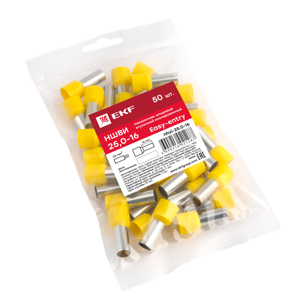 Одинарные и двойные втулочные наконечники (НШвИ и НШвИ2) EKF PROxima являются единственными специально разработанными наконечниками под опрессовку, которые полностью заменяют обязательный процесс облуживания многопроволочных медных проводов (типа ПВ-3, ПВС и т.п.) при монтаже различного электрооборудования. Втулочные наконечники состоят из медной луженой трубки, один конец которой развальцован для облегчения ввода многожильного провода и изолирующей манжеты из полипропилена.