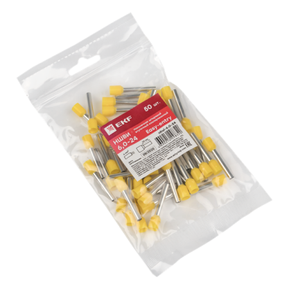 Одинарные и двойные втулочные наконечники (НШвИ и НШвИ2) EKF PROxima являются единственными специально разработанными наконечниками под опрессовку, которые полностью заменяют обязательный процесс облуживания многопроволочных медных проводов (типа ПВ-3, ПВС и т.п.) при монтаже различного электрооборудования. Втулочные наконечники состоят из медной луженой трубки, один конец которой развальцован для облегчения ввода многожильного провода и изолирующей манжеты из полипропилена.