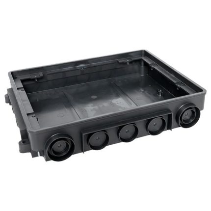 Лючок под розетки – это изделие прямоугольной формы, для компактного размещения электрических и информационных розеток. Лючки могут использоваться самостоятельно при установке в фальш-пол или вместе с коробкой для заливки в бетон, которая устанавливается в момент заливки стяжки. Лючки имеют вводы для установки кабелей внутри пола и выводы непосредственно к потребителю через крышку лючка. Внутри лючка есть посадочные модули (посты) стандарта 45*45 для установки розеток. Все лючки C-Line ударопрочные и выдерживают нагрузку до 153 кг.