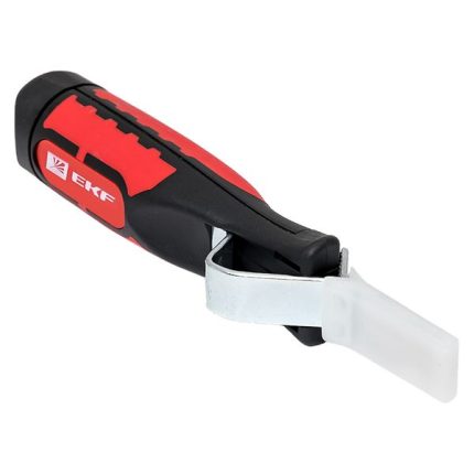 Ножи строительно-монтажные со сменными выдвижными сегментированными и трапециевидными лезвиями EKF серии MASTER и EXPERT служат для резки различных строительных материалов (линолеум, ковровые покрытия, обои, гипсолитовые плиты, гипсокартон, кровельные материалы, пластик, дерево, макетных работ). Могут применяться как в бытовых условиях, так и профессионалами. Прочный металлический корпус со вставками из резины и пластика позволяет прикладывать значительные усилия при резе. Обрезиненный корпус обеспечивает крепкий и надежный хват без опасения соскальзывания руки в зону реза. Фиксаторы различной конструкции надежно удерживают лезвие при работе с большими усилиями. Ассортимент сменных лезвий, выполненных из высокопрочной инструментальной стали долго держат заточку и сохраняют высочайшую режущую способность инструмента. Увеличенное с 7 до 14 число ломающихся сегментов лезвий удваивает ресурс инструмента.