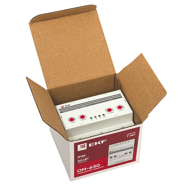 Ограничители мощности ОМ-3, ОМ-14 ОМ-630 EKF PROxima – это чувствительные приборы, которые отключат оборудование при выходе потребляемой мощности за допустимые значения. В функции ОМ-3 и ОМ-630 входит измерение мощности в одно и трёхфазных сетях соответственно и срабатывание при превышении заданного параметра. ОМ-14 обладает расширенным функционалом. Это устройство с удобным управлением и двумя цифровыми дисплеями измеряет активную, реактивную и полную мощности в однофазной сети, а также работает в режимах вольтметра и амперметра. ОМ-14 отключает оборудование при превышении порога мощности, защищает его от повышенного и пониженного напряжения. Чтобы подключить ОМ-14 в сети с током до 63А не потребуется устанавливать дополнительный контактор. Благодаря встроенному трансформатору прибор рассчитан на максимальный ток 80А. Особенности ограничителя мощности ОМ-630 EKF PROxima: — трансформаторное подключение и измерение мощности до 50 кВт, а так же управление 2-мя ступенями. Гарантия на все устройства составляет 7 лет.