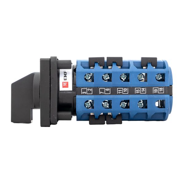 Кулачковые переключатели ПК EKF PROxima представляют собой механические коммутационные аппараты. Рассчитаны на применение в цепях переменного тока номинальным напряжением до 400 В и частотой 50/60 Гц. Благодаря повышенному содержанию серебра в контактах достигается их пониженное переходное сопротивление и повышенная устойчивость к воздействию внешней среды. Выпускается несколько исполнений кулачковых переключателей: • ПК-1 – стандартный кулачковый переключатель с различными схемами коммутации и разным количеством полюсов; • ПК-2 – трехфазный кулачковый переключатель с усовершенствованной контактной группой (выключатель нагрузки); • ПК-3 – трехфазный кулачковый переключатель в защитном боксе IP 54 (выключатель нагрузки). Переключатели ПК-1 и ПК-2 выпускаются с передним креплением. Устанавливаются на переднюю панель щитового оборудования, пульт управления и т. п. Переключатели ПК-3 с задним креплением устанавливаются на монтажную панель.