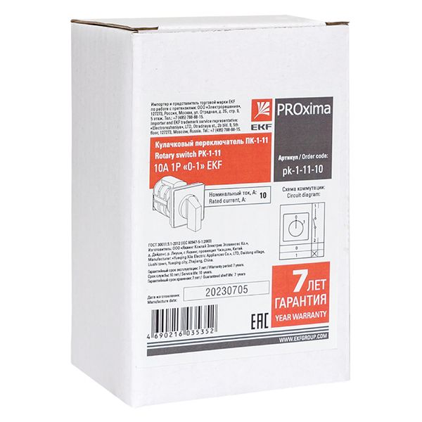 Переключатель кулачковый ПК-1-11 10А 1P «0-1» EKF PROxima