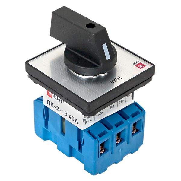 Кулачковые переключатели ПК EKF PROxima представляют собой механические коммутационные аппараты. Рассчитаны на применение в цепях переменного тока номинальным напряжением до 400 В и частотой 50/60 Гц. Благодаря повышенному содержанию серебра в контактах достигается их пониженное переходное сопротивление и повышенная устойчивость к воздействию внешней среды. Выпускается несколько исполнений кулачковых переключателей: • ПК-1 – стандартный кулачковый переключатель с различными схемами коммутации и разным количеством полюсов; • ПК-2 – трехфазный кулачковый переключатель с усовершенствованной контактной группой (выключатель нагрузки); • ПК-3 – трехфазный кулачковый переключатель в защитном боксе IP 54 (выключатель нагрузки). Переключатели ПК-1 и ПК-2 выпускаются с передним креплением. Устанавливаются на переднюю панель щитового оборудования, пульт управления и т. п. Переключатели ПК-3 с задним креплением устанавливаются на монтажную панель.