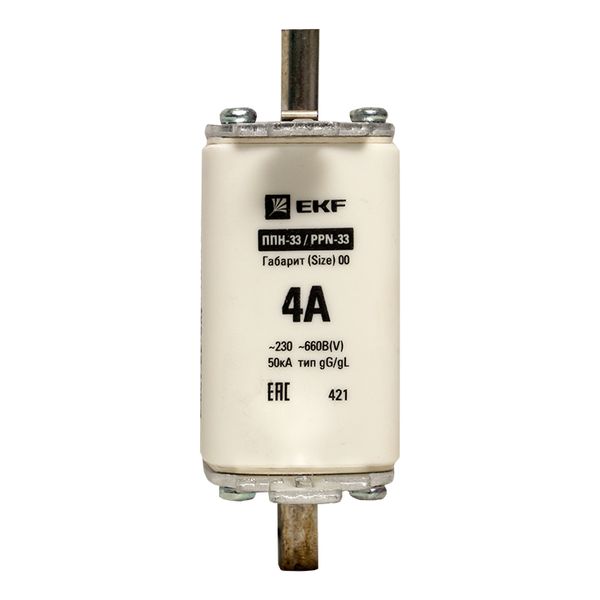 Плавкая вставка ППН-33 160/ 4А габарит 00 EKF. Предохранители плавкие ППН EKF, укомплектованные плавкими вставками типа gG/gL, предназначаются для защиты кабельных линий и промышленных электроустановок от токов перегрузки и короткого замыкания. Предохранители применяются в электрических сетях переменного тока частотой 50 Гц с напряжением до 660В. Применяются для крепления в распределительных и вводно-распределительных устройствах. Предохранители плавкие ППН могут устанавливаться в основание с держателем, а также в специально предназначенные рубильники. В комплект поставки предохранителей плавких ППН основание с держателем не входит и приобретается отдельно.