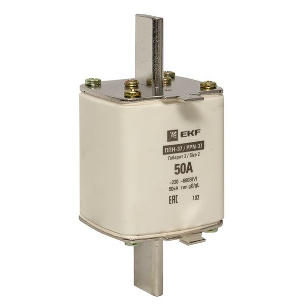 Плавкая вставка ППН-37 400/50А габарит 2 EKF. Предохранители плавкие ППН EKF, укомплектованные плавкими вставками типа gG/gL, предназначаются для защиты кабельных линий и промышленных электроустановок от токов перегрузки и короткого замыкания. Предохранители применяются в электрических сетях переменного тока частотой 50 Гц с напряжением до 660В. Применяются для крепления в распределительных и вводно-распределительных устройствах. Предохранители плавкие ППН могут устанавливаться в основание с держателем, а также в специально предназначенные рубильники. В комплект поставки предохранителей плавких ППН основание с держателем не входит и приобретается отдельно.