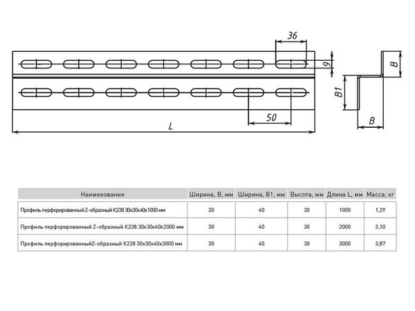 Главная Кабеленесущие системы Профиль монтажный для кабельного лотка Профиль перфорированный Z-образный К238 30х40х3000 мм (2 мм) EKF