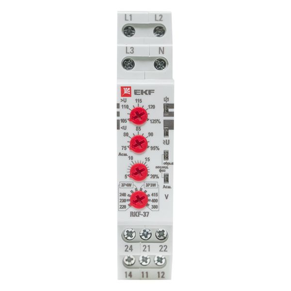Реле контроля фаз RKF является механическими коммутационным аппаратом, который предназначается для контроля уровня напряжения в трехфазных сетях переменного тока и защитного отключения нагрузки в случае падения или повышения напряжения электрической сети сверх допустимого значения, а также в случае обрыва фазы, неверной последовательности фаз и асимметрии. Данные реле отличаются компактными размерами и универсальностью применения в трех- и четырехпроводных схемах. Реле контролирует следующие параметры: отсутствие фаз, падение напряжения, повышение напряжения, асимметрия напряжения с выдержкой времени срабатывания, чередование фаз.