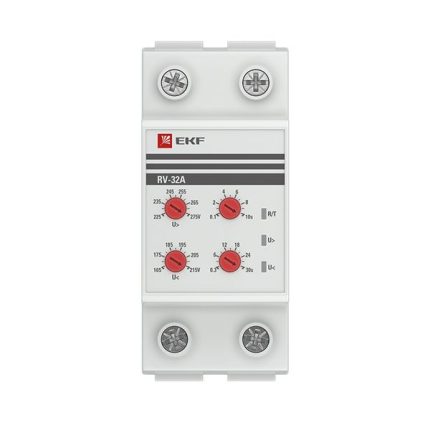 Реле напряжения и тока EKF PROxima являются микропроцессорным устройством и предназначено для постоянного контроля напряжения в однофазных и трехфазных сетях (MRVA-3) переменного тока, для защиты электроустановок от перепадов напряжения. Реле контролирует напряжение в сети в установленном диапазоне и при выходе напряжения за пределы диапазона отключает оборудование от сети электропитания с заданной выдержкой времени. Установка диапазона напряжения и времени срабатывания производится с помощью поворотных регуляторов (RV-5A, RV-32F) либо при помощи кнопок (MRV, MRVA, MRVs) расположенных на лицевой поверхности реле.