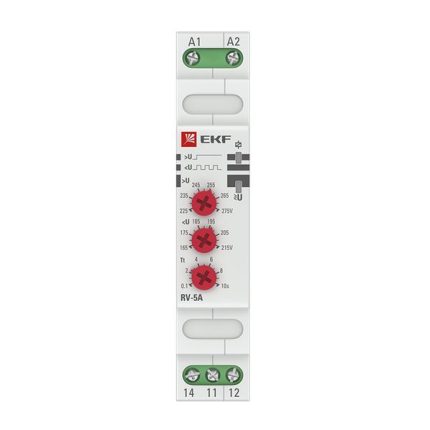 Реле напряжения и тока EKF PROxima являются микропроцессорным устройством и предназначено для постоянного контроля напряжения в однофазных и трехфазных сетях (MRVA-3) переменного тока, для защиты электроустановок от перепадов напряжения. Реле контролирует напряжение в сети в установленном диапазоне и при выходе напряжения за пределы диапазона отключает оборудование от сети электропитания с заданной выдержкой времени. Установка диапазона напряжения и времени срабатывания производится с помощью поворотных регуляторов (RV-5A, RV-32F) либо при помощи кнопок (MRV, MRVA, MRVs) расположенных на лицевой поверхности реле.