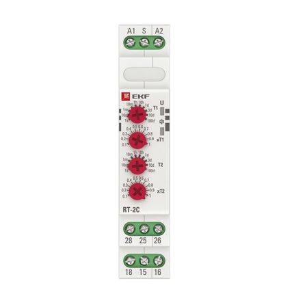Реле времени RT-2C EKF PROxima является электронным коммутационным аппаратом с регулируемой установкой времени. Реле предназначено для создания циклической работы схемы с задержкой на включение. Переключение диапазонов времени производится с помощью поворотных регуляторов, расположенных на лицевой поверхности реле. Реле применяется в системах промышленной и бытовой автоматики: в вентиляционных, отопительных, осветительных. Категория применения – АС-15 (управление электромагнитами мощностью свыше 72 Вт). Многофункциональное реле времени RT-10 EKF PROxima является электронным коммутационным аппаратом с регулируемыми режимами работы и регулируемой установкой времени. Реле предназначено для включения или отключения нагрузки по заданным временным величинам и режимам работы. Переключение диапазонов времени и режимов работы производится с помощью поворотных регуляторов расположенных на лицевой поверхности реле. Реле применяется в системах промышленной и бытовой автоматики: в вентиляционных, отопительных, осветительных системах. Категория применения – АС-15 (управление электромагнитами мощностью свыше 72 Вт). Реле времени RT-SBA EKF PROxima является электронным коммутационным аппаратом с регулируемой установкой времени. Реле предназначено для включения нагрузки с задержкой времени включения. Переключение диапазона времени производится с помощью поворотного регулятора, расположенного на лицевой поверхности реле. Реле применяется в системах промышленной и бытовой автоматики: в вентиляционных, отопительных, осветительных системах. Категория применения – АС-15 (управление электромагнитами мощностью свыше 72 Вт).