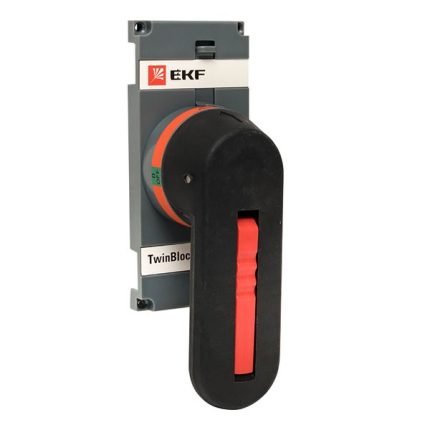 Рукоятка управления для прямой установки на рубильники TwinBlock EKF. Рубильники серии TwinBlock предназначены для пропускания номинальных токов, включения и отключения электрических цепей номинальным напряжением до 690 В переменного тока частотой 50 и 60 Гц в устройствах распределения электрической энергии. Для моделей без рукоятки предусмотрены два типа рукояток: выносная рукоятка для управления через дверь и рукоятка управления для прямой установки на рубильник.