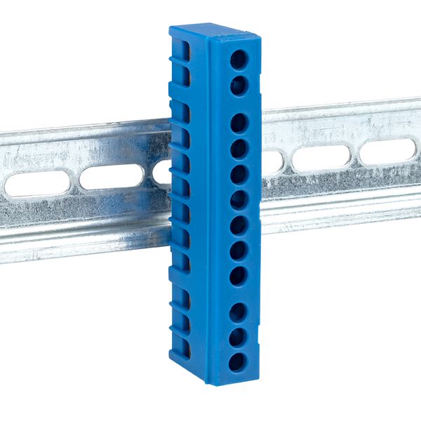 Главная Щиты, корпуса и комплектующие Шина заземления/нулевая для распределительного щита Шина «0» N (6х9мм) 12 отверстий латунь синий изолированный корпус на DIN-рейку EKF PROxima