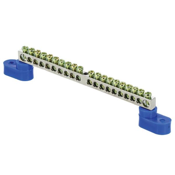Шина "0" N (8х12мм) 14 отверстий латунь 2 синих угловых изолятора EKF PROxima