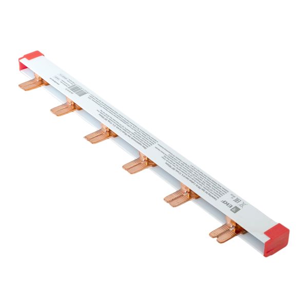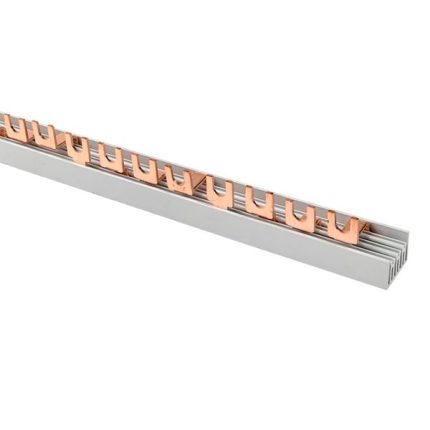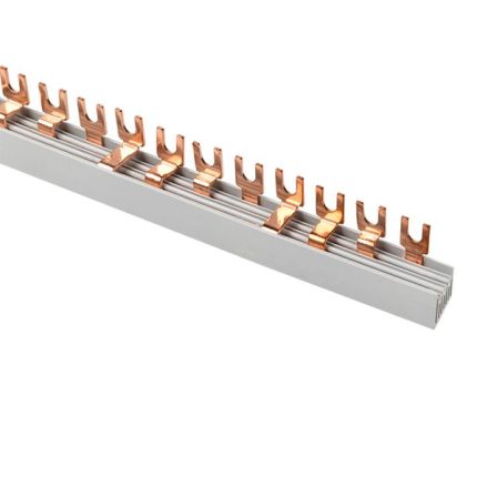 Шины соединительные представляют собой пластины, выполненные из меди (шины на 100 А – из луженой меди), закрепленные в корпусе из диэлектрического материала, не поддерживающего горение, и выпускаются стандартной длиной 1 метр. Шины соединительные делятся на два типа — FORK («вилка») и PIN («гребенка») на номинальные токи 63 и 100 А. Могут быть выполнены в одно- двух- трех- и четырехполюсном исполнений.