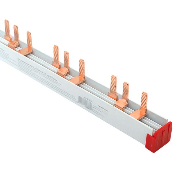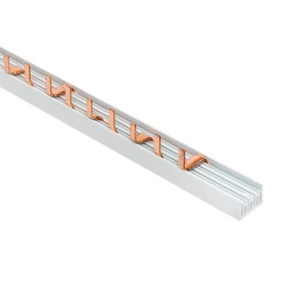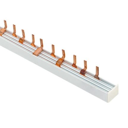 Шины соединительные представляют собой пластины, выполненные из меди (шины на 100 А – из луженой меди), закрепленные в корпусе из диэлектрического материала, не поддерживающего горение, и выпускаются стандартной длиной 1 метр. Шины соединительные делятся на два типа — FORK («вилка») и PIN («гребенка») на номинальные токи 63 и 100 А. Могут быть выполнены в одно- двух- трех- и четырехполюсном исполнений.
