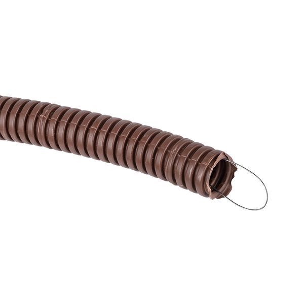 Главная Кабеленесущие системы Труба гофрированная пластиковая Труба гофр. ПВХ с протяжкой d20 мм (25 м) темное дерево EKF-Plast