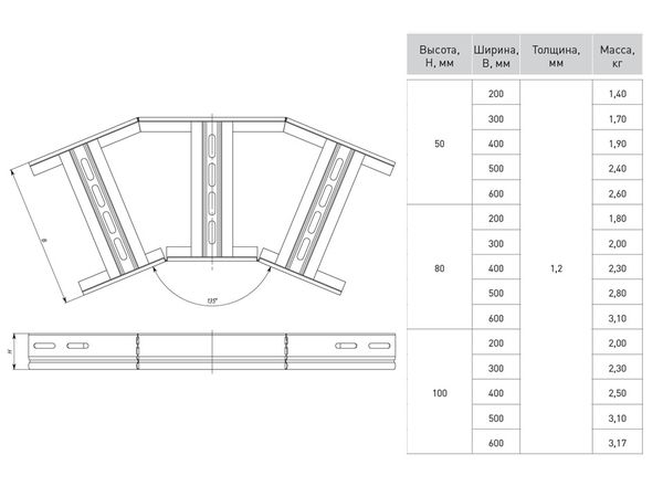| Высота лестничного лотка (боковой стенки) | 100 |
