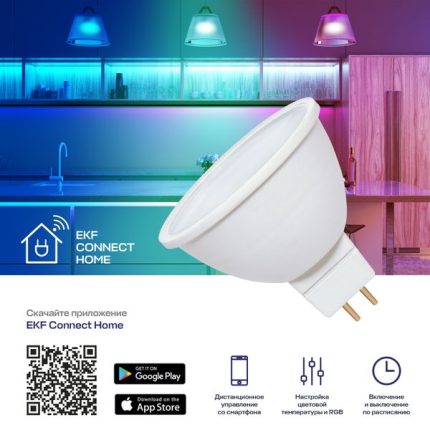 Умная филаментная лампа EKF Connect E27 позволяет изменять цветовую температуру и яркость, чтобы создать ту атмосферу, которая нужна в данный момент. Умными лампами можно дистанционно управлять по Wi-Fi с помощью мобильного приложения EKF Connect Home для iOS и Android. В приложении можно устанавливать расписание включения и выключения. Также поддерживается голосовое управление с помощью Алисы от Яндекса, Маруси от VK и Салюта от Сбера. Сценарии позволяют управлять несколькими устройствами с помощью одной голосовой команды или нажатия кнопки. Преимущества: Тёплый или холодный белый свет на выбор Регулировка яркости Работает с iOS и Android Работает с Алисой, Марусей и Салютом Поддержка протокола Bluetooth Low Energy (BLE) для быстрого подключения и для прямого управления с телефона даже при отсутствии Wi-Fi Применение: Автоматизация освещения в квартире