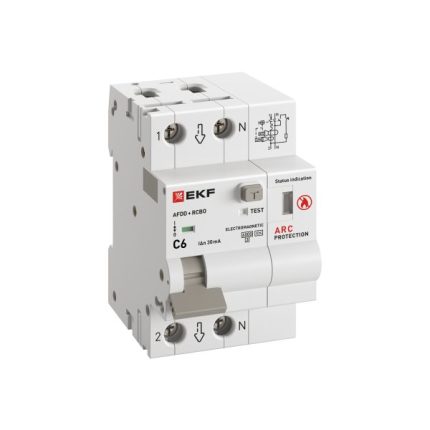 Устройство защиты от дугового пробоя с автоматическим выключателем дифференциального тока (УЗДП + АВДТ) 1P+N 6А 30мА характеристика С тип А 6 кА PROXIMA EKF