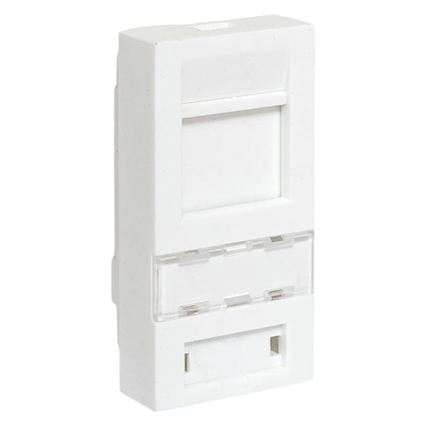 Корпуса розеток и вставки TERACOM® снабжены защитными шторками, обеспечивающими защиту контактов и препятствующими попаданию пыли внутрь корпуса и на контакты информационных модулей. На лицевой поверхности изделий имеется маркировочная площадка для идентификаторов и нумерации розеток в общей схеме кабельной системы.