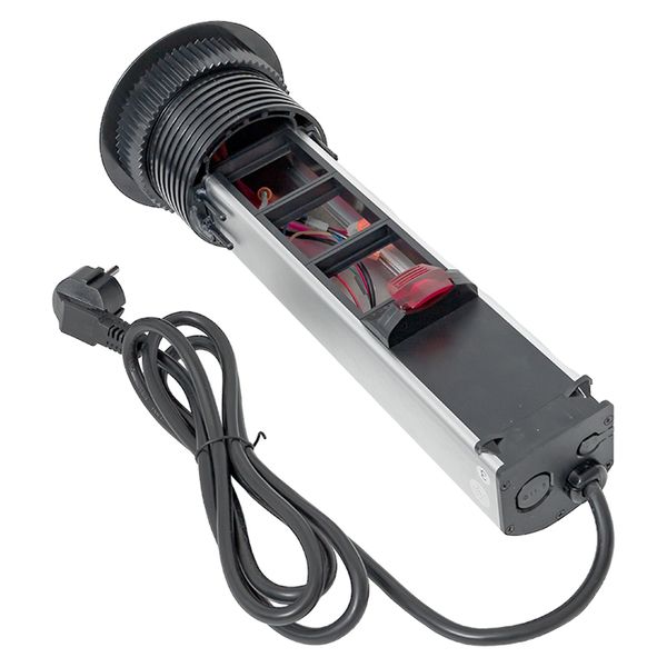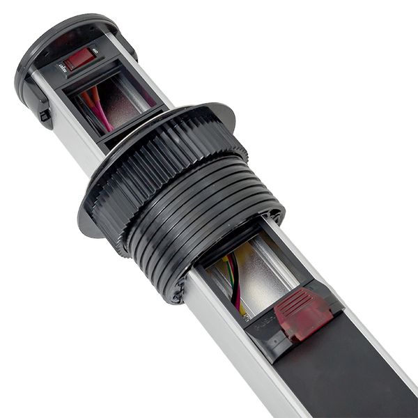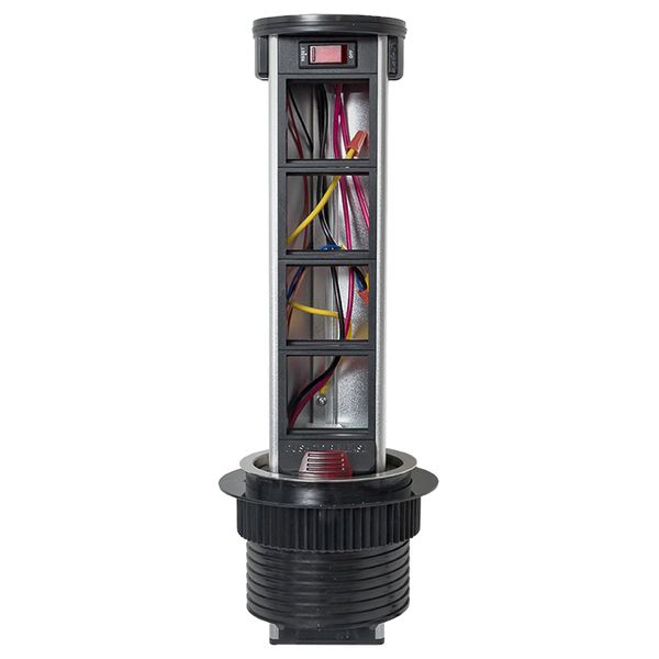 Встраиваемая мини-колонна с беспроводной зарядкой 15 Вт, 8 модулей C-Line. Встраиваемая мини-колонна с беспроводной зарядкой – это изделие цилиндрической формы с ручным выдвижным механизмом, предназначенное для установки ЭУИ стандарта 45х45. Верхняя крышка мини-колонны оснащена беспроводной зарядкой для электронных девайсов. Беспроводное зарядное устройство считывает данные с контроллера питания подключенного девайса и подбирает оптимальные и безопасные выходные параметры тока и напряжения. Изделие поставляется в комплекте с сетевым кабелем питания (2 метра). В нижней крышке колонны предусмотрены 2 дополнительных кабельных ввода. Монтаж производится в предварительно подготовленное отверстие диаметром Ø95-100 мм. Допустимая толщина поверхности стола 10-45 мм.