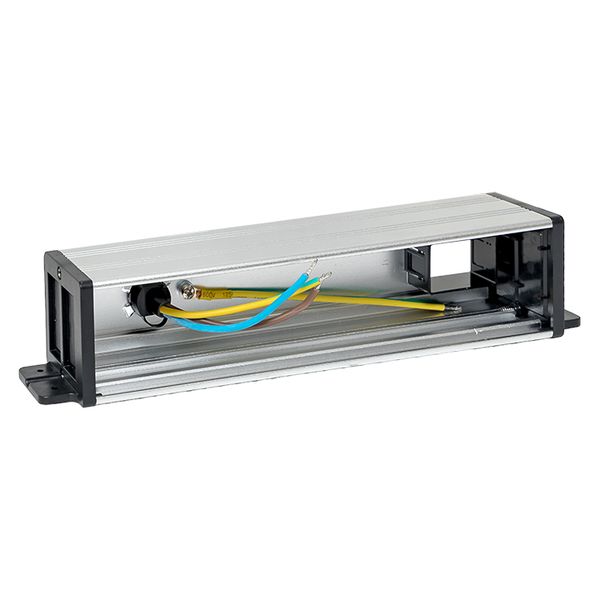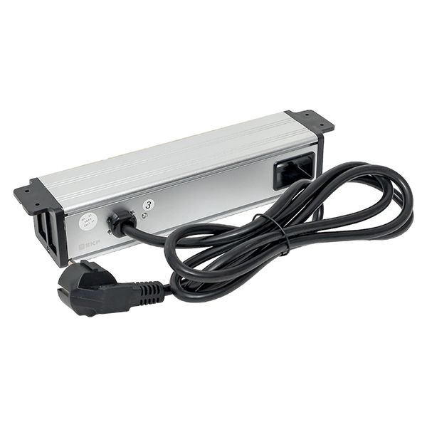 Встраиваемый настольный розеточный блок для крепления под столом, 10 модулей, C-Line. Розеточный блок для крепления под столом – изделие прямоугольной формы, предназначенное для размещения модульных ЭУИ под столом. Розеточный блок монтируется на нижнюю поверхность стола при помощи крепежных винтов. Сетевой кабель питания (2 метра) и крепеж в комплекте. На задней стенке розеточного блока предусмотрено дополнительное отверстие для подведения слаботочных кабельных линий.