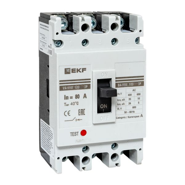 Выключатель ВА-99М выполнен в виде моноблока и состоит из основания и крышки с фальшпанелью, в которой имеется окно для рукоятки управления и толкатель кнопки «Тест» — проверки механизма отключения выключателя. Основание выполнено из термостойкой пластмассы, не поддерживающей горение и являющейся несущей конструкцией для присоединительных зажимов, неподвижных и подвижных контактов с системой дугогашения, механизма управления, блока защиты от сверхтоков. Крышка закрывает все подвижные элементы механизма управления и внутренние токоведущие части.