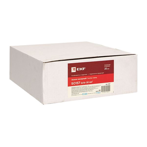Анкерный зажим типа so-157 предназначен для анкерного крепления ответвлений СИП-4 на вводе к абоненту. Подходит для 2-х жильного СИП-4. Зажим устойчив к ультрафиолетовому и солнечному излучению, высоким и низким температурам, коррозии и агрессивным атмосферным воздействиям.