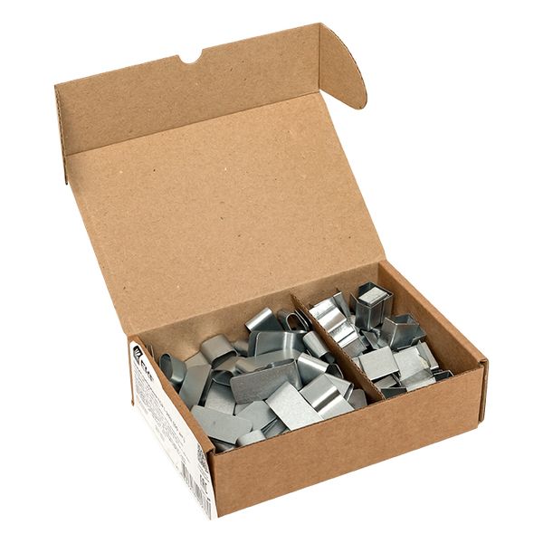 Металлический крепеж ТСР, КТСР представляет собой унифицированный крепеж, изготовленный из оцинкованной стали для крепления как саморегулирующихся (ТСР), так и резистивных нагревательных кабелей постоянной мощности (КТСР). Позволяют осуществить надежное и безопасное крепление нагревательных кабелей в обогреваемых зонах и предотвращает скручивание или самопересечение двух ниток кабеля между собой при монтаже. Выпускается для крепления как одной нитки кабеля к обогреваемой поверхности, так и двух ниток нагревательного кабеля между собой. Для монтажа зажимов в обогреваемых желобах применяется полоса стальная оцинкованная 0,5х15 мм, для монтажа зажимов с нагревательным кабелем в водосточных трубах – трос стальной в ПВХ оболочке.